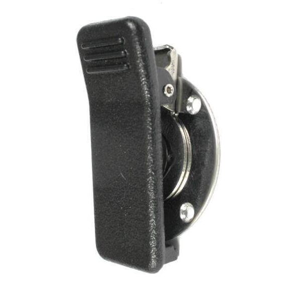 Replacement Rear Clip assembly for SPM-2100 and SPM-4200 Speaker Mics. Clip, spring and pin are pre-mounted on metal plate. Screws NOT included.