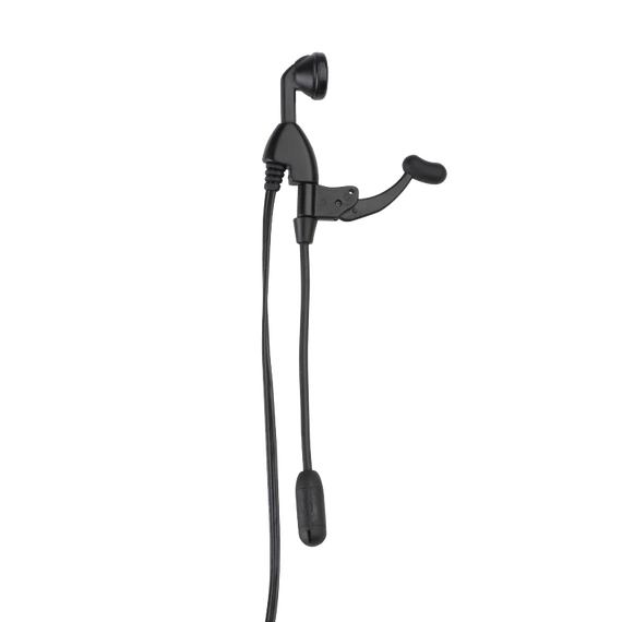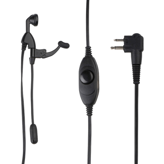 Small and lightweight, this earpiece clips comfortably to the ear. It features a boom microphone and in-line Push-to-Talk feature.